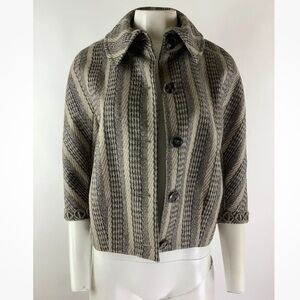 Rena Lange Sz 4 US 100% Virgin Wool Knit Blazer Brown Striped Silk Lined