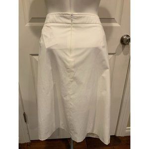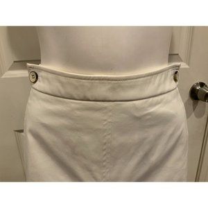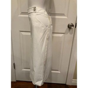 Rena Lange White Straight Skirt W/ Buttons & Pockets, Size 14 (US) 44 (D) NWT!
