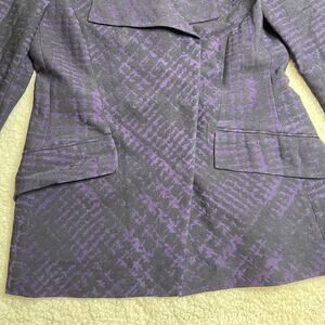 Rena Lange Woven Wool Silk Blend Purple Black Pattern Double Snap Jacket 10