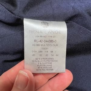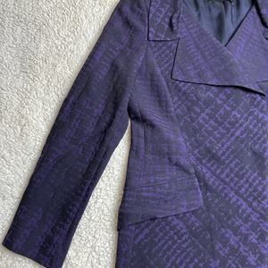 Rena Lange Woven Wool Silk Blend Purple Black Pattern Double Snap Jacket 10. Preowned and in excellent condition. Has deep purple and black coloring. Double buttons and they snap. Very beautiful jacket.