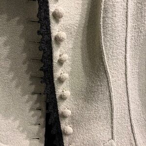 Beautiful vintage Rita Lange suite. Celdan green and with black trim. Stand up collar, scalloped sleeves. Worn twice, in excellent shape. Purchased at Neiman Marcus for $1700. Tailored beautiful suite on. Straight skirt, knee length. Size 36. Size 4-6. Light weight for wool