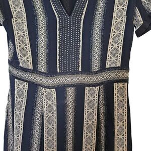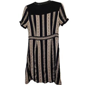 Armpit to armpit is 17 inches, waist is 29 inches and the length is approximately 36 inches. Side zipper. Material tag is removed, but it think it is silk. Looks vintage, but not sure. Excellent condition. Open to reasonable offers.
