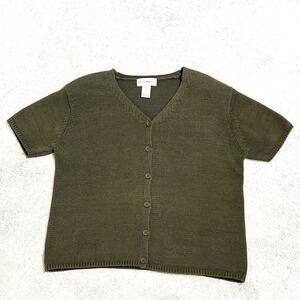 Rena Rowan Cardigan Sweater Large Green Button Front Short Sleeve Knit Vintage
