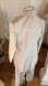 This elegant cream blazer and pant set is perfect for any occasion. Its sophisticated design adds a touch of class to your wardrobe. The jacket can be buttoned to the left or to the right. The jacket is a size 8 and the pants are a size 10. Defects: the are smudges(?) and one of the pant leg hems is partially out.