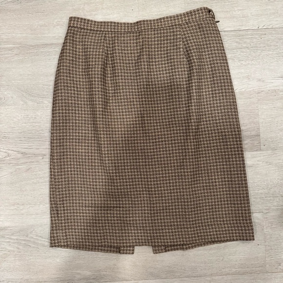 Rena Rowan For Seville Vintage Pencil Skirt Brown Plaid Size 8 Wool Rayon Blend