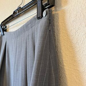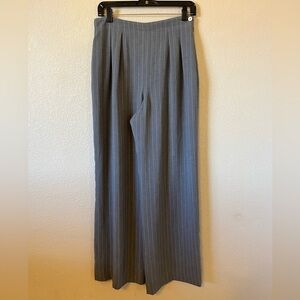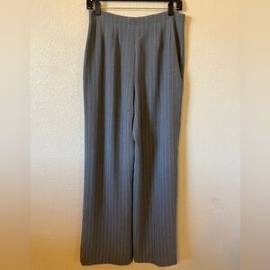 Rena Rowan Gray Striped Trousers, Size 10. Lined. 99% polyester and 1% other. Hidden side zip. No pockets. Wide leg. Waist: 15.5" Inseam: 30" Rear: 13.5" Length: 44"