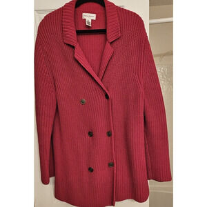 Rena Rowan Red Ribbed Knit Double-Breast Heavy Cotton Sweater Women's X-Large