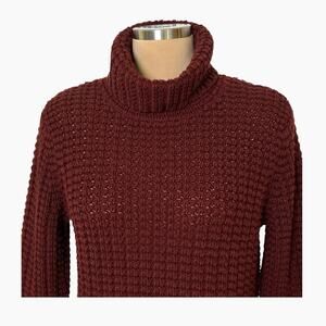 Rena Rowan Turtleneck Sweater Womens Large Thick Waffle Knit Burgundy Cozy Vtg