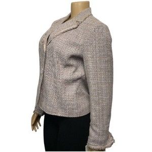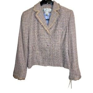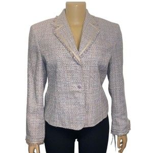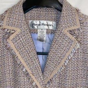 Rena Rowan Tweed Blazer Jacket Lavender Beige at the waist Fringe Edged size 8