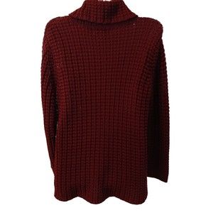 This beautiful garnet-colored sweater by Rena Rowan is made of a soft wool and acrylic material that requires hand wash only. The pullover style fits comfortably on women's size large and is perfect for regular winter and fall seasons.