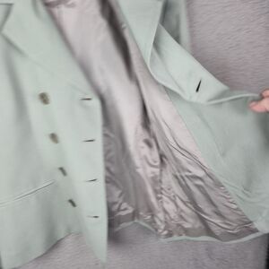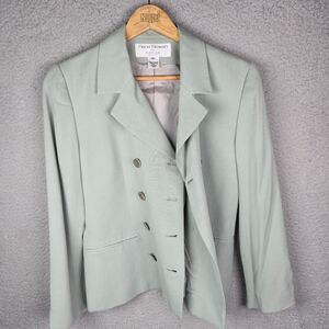 Rena Rowan Womens Silk Blazer Jacket 6P Green Double Breasted Classic Trendy