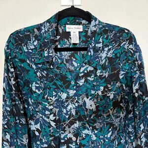 Rena Rowan Womens Size 18W Button Up Shirt 100% Silk Vintage Floral Top Career