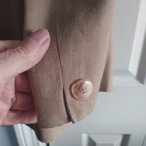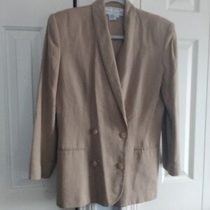 Rena Rowan for Saville Petite Tan Linen Blend Vintage Double Breasted Blazer 8P