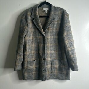 Rena Rowan gray beige plaid sweater blazer size XlArge great condition armpit to armpit 23 inches shoulder to hem 28 inches