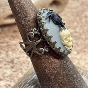 Renaissance CAMEO Skull Black Crow Raven gothic Ring Adjustable Christmas gift