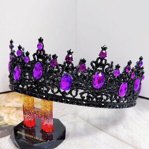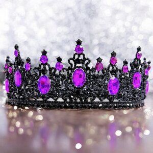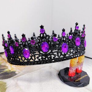 Color: Purple Crystal, rhinestones and Black-plated crown.