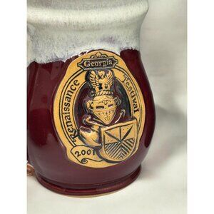 These distinctive stoneware mugs, celebrating the Georgia Renaissance Festival 2001, boast a unique emblem design. A professional addition to any collection, these mugs combine historical charm with practical use, offering a touch of elegance to your beverage experience. Their handcrafted quality ensures durability and timeless appeal.