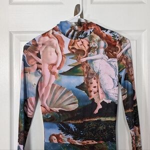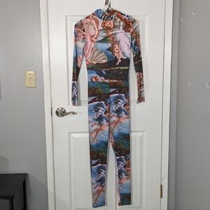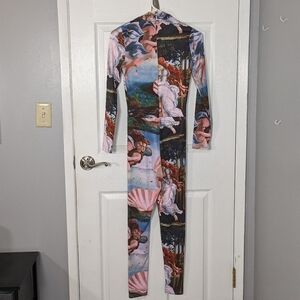 Renaissance Jumpsuit Cherub Print Mock Neck Long Sleeve Body Art Style Size S
