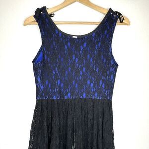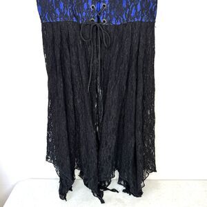 Renaissance Lace Long Bodice Corset Cinch Blue & Black Lace Sz Large