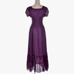 This elegant renaissance inspired boho purple maxi dress is perfect for any occasion. Its flowing design and rich color make it a standout piece in any wardrobe. Worn only once been sitting in my closet . Great condition. I’m 5’5 140 pounds. Ordered a small