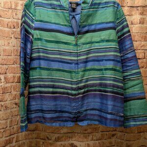 Renaissance Striped Blue and Green Jacket w/ Bonus Sandra Sleeveless Top L-XL