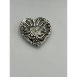 Renaissance Style Filigree Textured Silver Tone Heart Pin Brooch Black Stone.