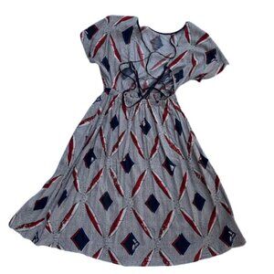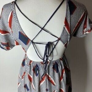 Anthro Re:named Black/White/Red/Navy Blue Abstract printed Backless Strappy Short Sleeve A-Line Dress