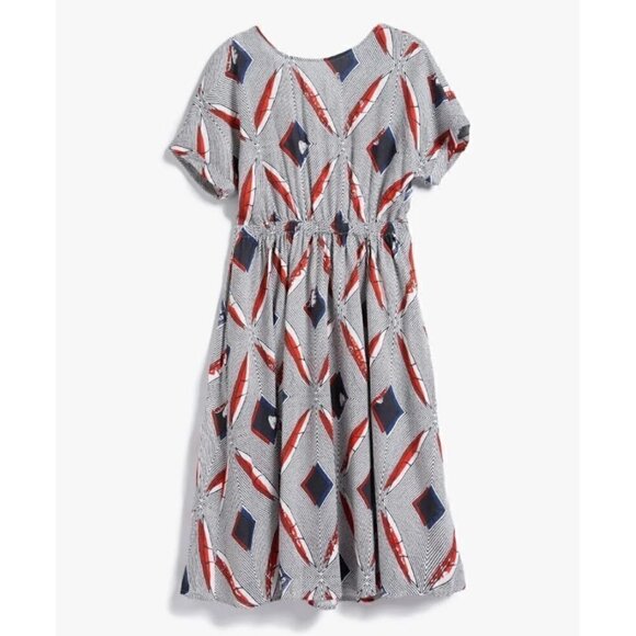 Anthro Re:named Black/White/Red/Navy Blue Abstract printed Backless Strappy Short Sleeve A-Line Dress