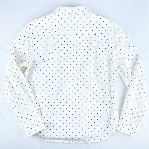 White Re:named woman's long sleeve button down with small blue diamond all over print