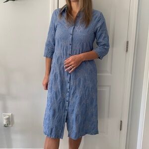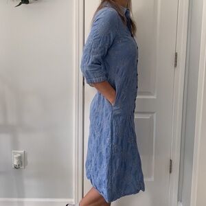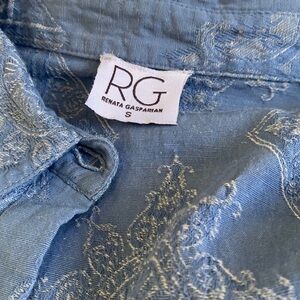 Renata Gasparian blue button up dress shirt side S embroidered chambray