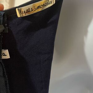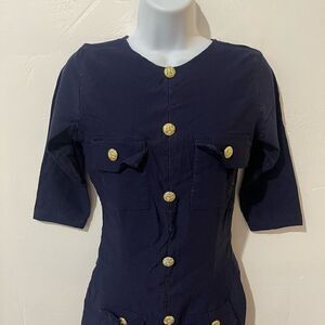 Renata Simonceles Women's Navy Crew Neck Midi Dress Gold Buttons Small