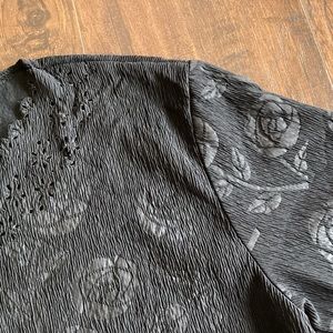 Black roses pattern top by Rendezvous in good preowned condition. No flaws.