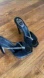 Elevate your look with these luxe black high-heel sandals featuring a pleated fabric design and sparkling rhinestone straps. These shoes are high-end and very expensive originally. They are in excellent, gently used condition with no stones missing. The only thing missing is a small brand tag on one shoe, which does not affect wear or quality.