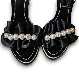 Rene Caovilla Black Ruffles & Pearls Open Toe High Heels & Box, Size EU 35/US 5