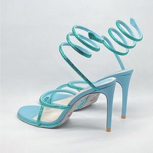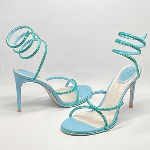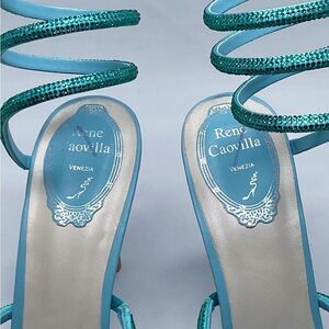 Rene Caovilla Blue Cleo Aquamarine Sandal With Crystals 105 size 40