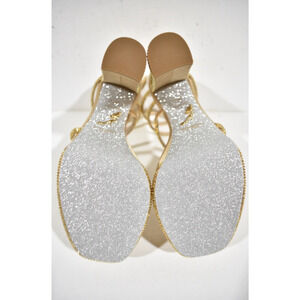 Rene Caovilla Cleo Gold Platform Crystal Wrap Strap Sandal Block Heel Pump 37.5