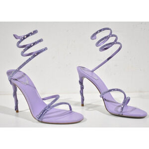 Rene Caovilla Margot Lilac Purple Strass Ankle Wrap Strap Sandal Heel Pump 41.5