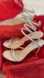 Chic white sparkle Heeled Sandals with iconic Rene Caovilla. 105 MM heel Height snake style ankle sandals. So beautiful. Worn once to an event. Almost new. I injured my back and can’t wear heels this high anymore. Comes with the box and the sleeper bags.