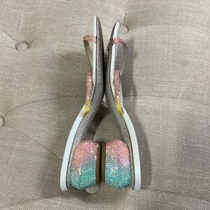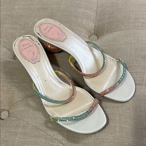Rene Caovilla Strass Two Band Slide Sandals in Rainbow Rhinestone Sandal 37.5