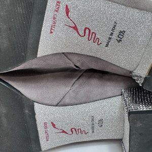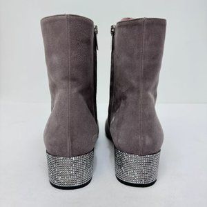 Rene Caovilla Suede w/ Rhinestone Heel Booties Gray Silver