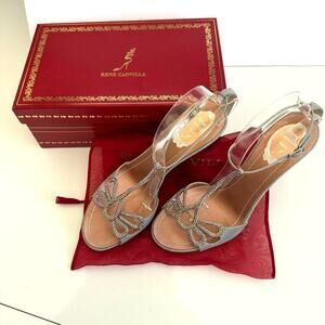 Vintage Rene Caovilla heels in a gorgeous shimmery silver/gray shade. Leather soles. Soles have been refitted to avoid leather wear. Like new vintage condition. Tried on, but not worn outside. Minimal wear. Size IT 40/10B