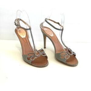 Rene Caovilla Vintage Heels T-strap Sandals Crystal Italian Satin Leather Sz 40
