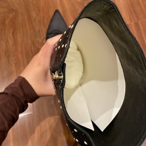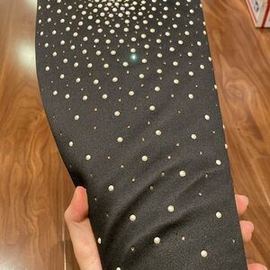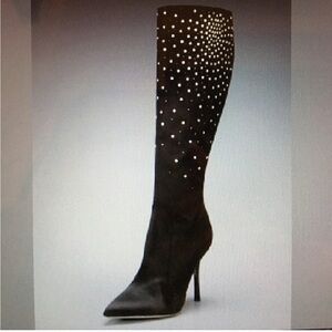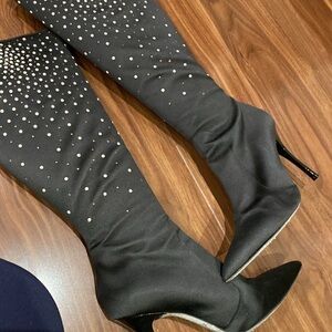 Rene Caovilla / black satin studded rhinestone heeled high pearl Boot 39.5 9.5