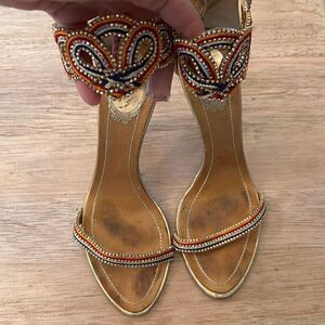 Rene Caovilla gorgeous gold and rhinestone heels size 39