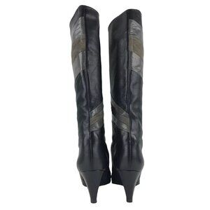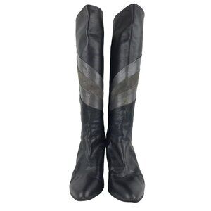 Rene Caty Womens Gray Leather Pointed Toe Cone Heel Knee High Boots Size 6