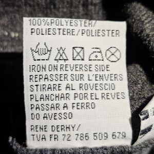 Sweater material on top half, round neck, 2 front pockets (one change pocket) 2 rear pockets