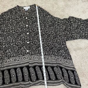 Rene Derhy Top Womens Large Black White Paisley Artsy Boho Peasant Blouse