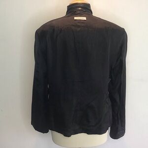 Rene Lezard black leather notched collar/zigzag stitching, 2 button blazer (EU size 42) Please see measurements. This fits like an 8.