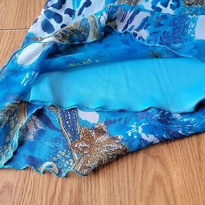 midi skirt size LG (12/14) colors blue and brown pictures with approximate measurements for better fit idea