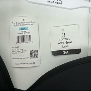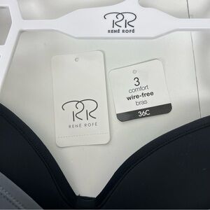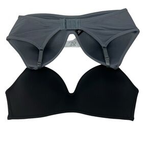 Rene ROFE Women’s Bras Sz 36C Lot/2 Gray & Black Wire-free Lightly Padded